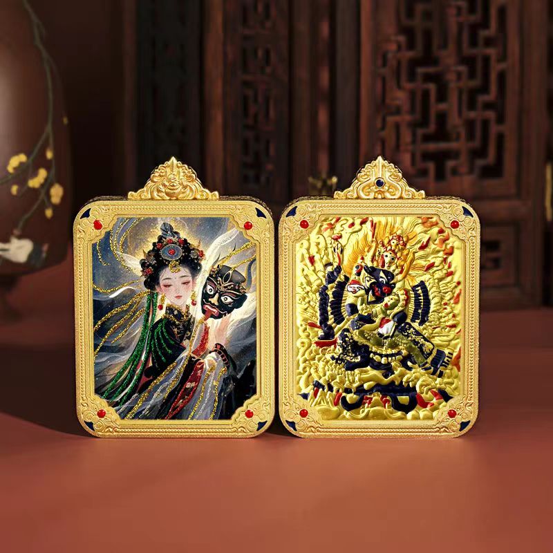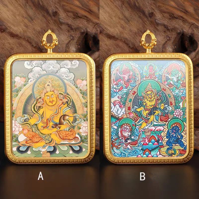 Tibetan pure hand-painted gold-painted Zakiram thangka pendant