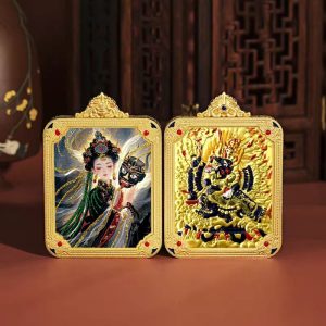 Tibetan double-sided gold-painted Bodhisattva thangka pendant